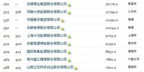 煤炭企業(yè)中,內蒙古伊泰煤炭股份有限公司(第153位)、安源煤業(yè)集團股份有限公司(第262位)、中國秦發(fā)集團有限公司(第356位)、永暉焦煤股份有限公司(第392位)、永泰能源股份有限公司(第480位)五家公司,首次入圍今年的榜單。