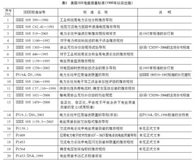 (2)電能質量測量、相關電氣設備以及治理設備(裝置)的標準也已有少量問世;
